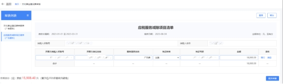 2)確認數(shù)據(jù)是否正確,并進行補充,點擊“編輯扣除項”可填寫《應稅服務減除項目清單》。