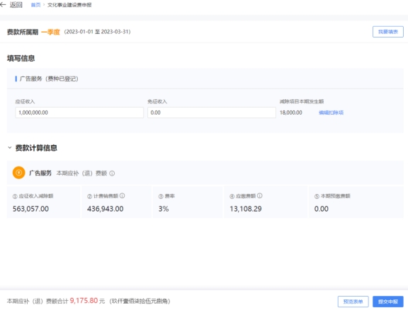 2)繳費人可對《文化事業(yè)建設費申報表(廣告業(yè))》及《應稅服務減除項目清單(廣告業(yè))》進行依次填寫和修改;