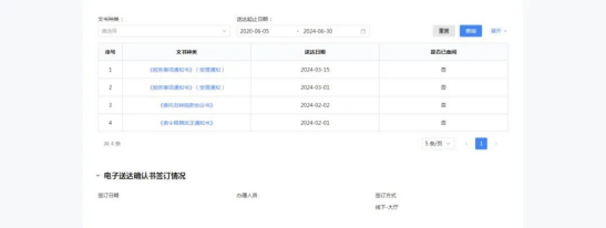 登錄新電子稅局后,您可點擊【我要查詢】-【稅務(wù)文書電子送達(dá)查詢】-【稅務(wù)文書送達(dá)確認(rèn)】,選擇文書種類、送達(dá)起止日期、是否已查閱等條件,點擊【查詢】查詢已送達(dá)的文書。