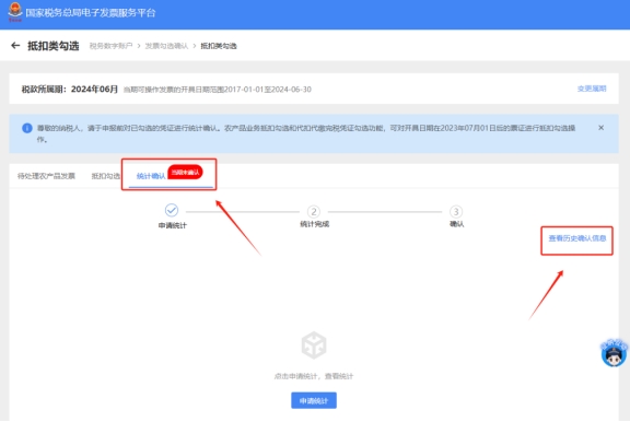 注:若要查詢往期數(shù)據(jù),可在此頁面點擊右側(cè)【歷史確認信息】進入,選擇需要查看的所屬月份即可。