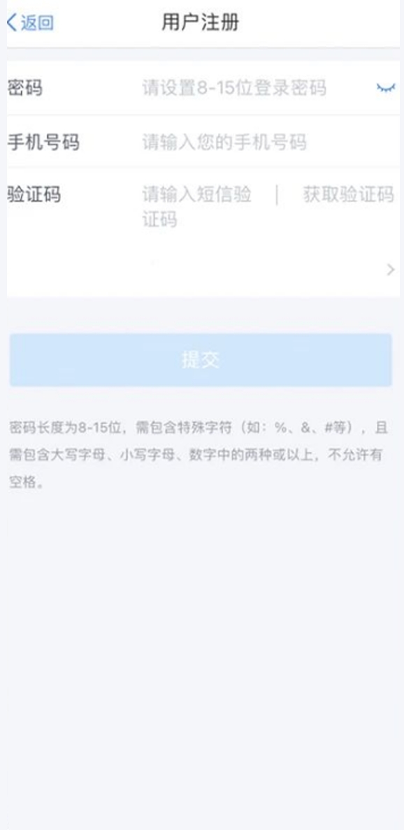 03、在【用戶注冊】頁填寫密碼和手機(jī)號碼,輸入短信驗(yàn)證碼,注冊即完成。