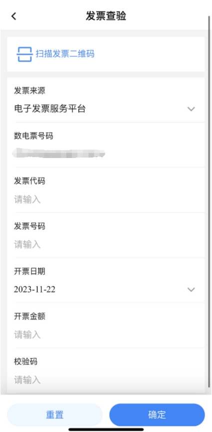進(jìn)入“發(fā)票查驗(yàn)”頁面,可通過掃描已開具發(fā)票的票面二維碼帶出相關(guān)信息,也可在頁面手動錄入發(fā)票相關(guān)信息后點(diǎn)擊【確定】按鈕;若為本人發(fā)票,則只錄入發(fā)票號碼就可以查驗(yàn),若為第三方發(fā)票,則提示填入開票日期及開票金額(含稅金額)后進(jìn)行查驗(yàn)。