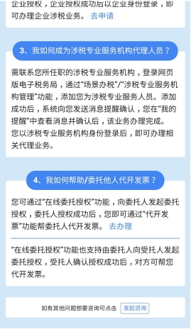 2.2、登錄為自然人,展示:我如何代開發(fā)票、我如何申請成為企業(yè)辦稅員、我如何成為涉稅專業(yè)服務(wù)機(jī)構(gòu)代理人員、我如何幫助/委托他人代開發(fā)票等輔導(dǎo)信息。