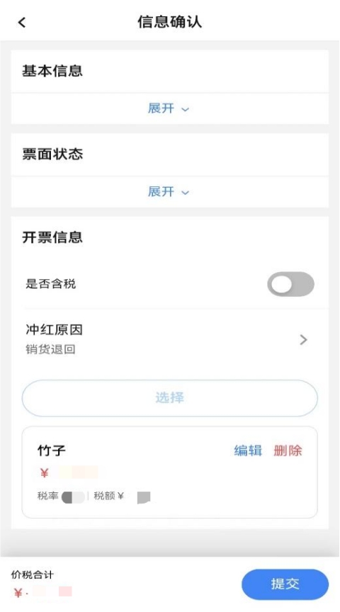納稅人開具藍(lán)字發(fā)票后,發(fā)生銷貨退回(包括全部退回和部分退回)、開票有誤、服務(wù)中止(服包括全部中止和部分中止)、銷售折讓等情形,按規(guī)定開具紅字發(fā)票。移動端僅支持開具紅字電子發(fā)票,且不支持特定業(yè)務(wù)發(fā)票的紅沖。