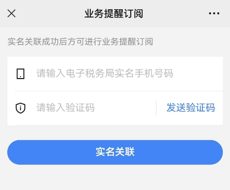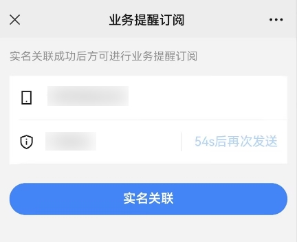 4.用戶輸入手機(jī)號、獲取并輸入驗(yàn)證碼后點(diǎn)擊“實(shí)名關(guān)聯(lián)”,若關(guān)聯(lián)成功,跳轉(zhuǎn)回“業(yè)務(wù)提醒訂閱”界面。