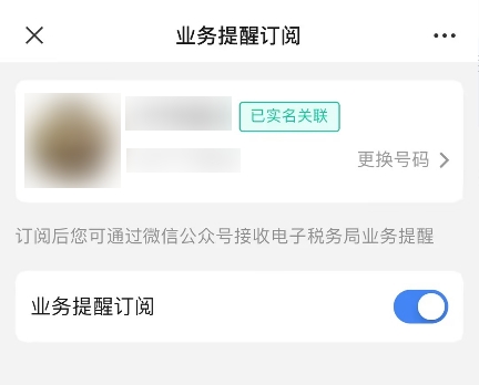 5.當(dāng)完成實(shí)名關(guān)聯(lián)后,默認(rèn)開啟業(yè)務(wù)提醒訂閱(可手動關(guān)閉);并且可以通過微信公眾號接收到消息推送。