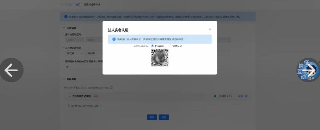 (2)當(dāng)自動(dòng)審核關(guān)閉時(shí),系統(tǒng)提示“您的跨區(qū)域遷移申請(qǐng)已提交成功,請(qǐng)耐心等待稅務(wù)機(jī)關(guān)的處理結(jié)果”。