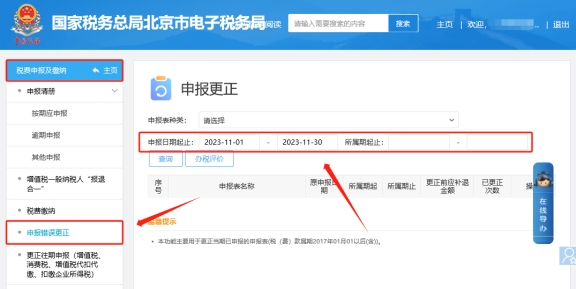 二、稅費(fèi)申報及繳納—申報錯誤更正,修改申報月份,點(diǎn)擊更正財報即可。