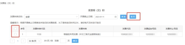 3、點(diǎn)擊“發(fā)票驗(yàn)(交)舊”。