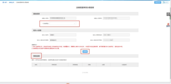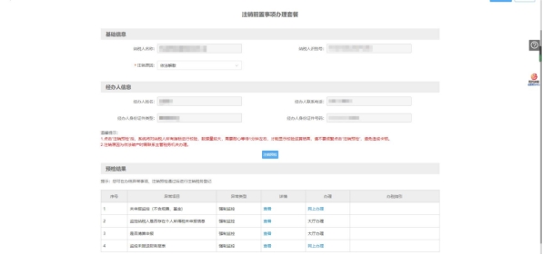 14、處理完畢重新點(diǎn)擊“注銷預(yù)檢”,未發(fā)現(xiàn)異常事項(xiàng)后,點(diǎn)擊“申請(qǐng)注銷”。