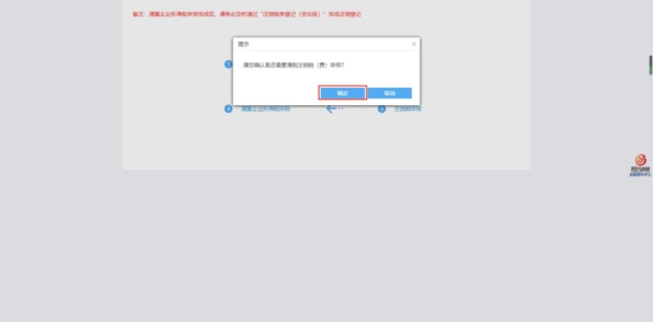 7、“是否需要清稅注銷稅申報(bào)”點(diǎn)擊“確定”。