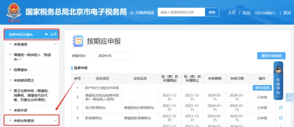 二、稅費申報及繳納—申報臺賬查詢,查詢即可。