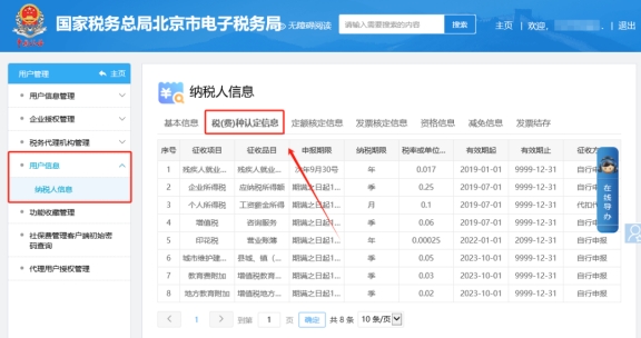 二、用戶信息—納稅人信息—稅(費)種認定信息查看。