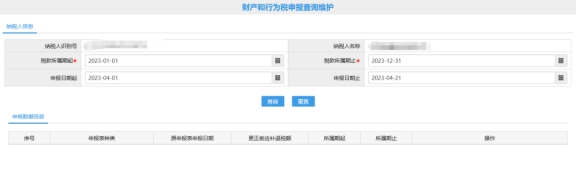 三、財產(chǎn)和行為稅申報查詢維護。