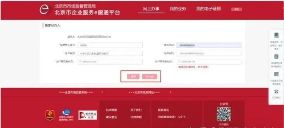 步驟三:填寫(xiě)指定的經(jīng)辦人信息,其中*為必填項(xiàng),然后點(diǎn)擊“保存”并選擇“下一步”。